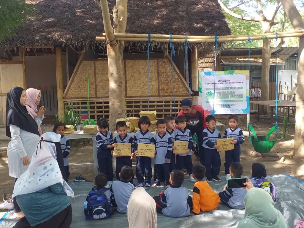 Pagi di Dusun Karang Subagan Daya selalu dimulai dengan riuh suara anak-anak. Dari sebuah bangunan sederhana bercat hijau muda, tawa mereka terdengar bersahutan, kadang diselingi lagu-lagu anak yang dilantunkan dengan penuh semangat. Di sanalah TK Maca Pasirputih (selanjutnya disebut TK Maca) berdiri—sebuah lembaga pendidikan formal untuk anak usia dini yang lahir dari keyakinan bahwa belajar tidak semestinya kaku dan jauh dari kehidupan sekitar. Di tempat ini, huruf dan angka dipelajari berdampingan dengan kisah tentang laut, sawah, dan kampung mereka sendiri.